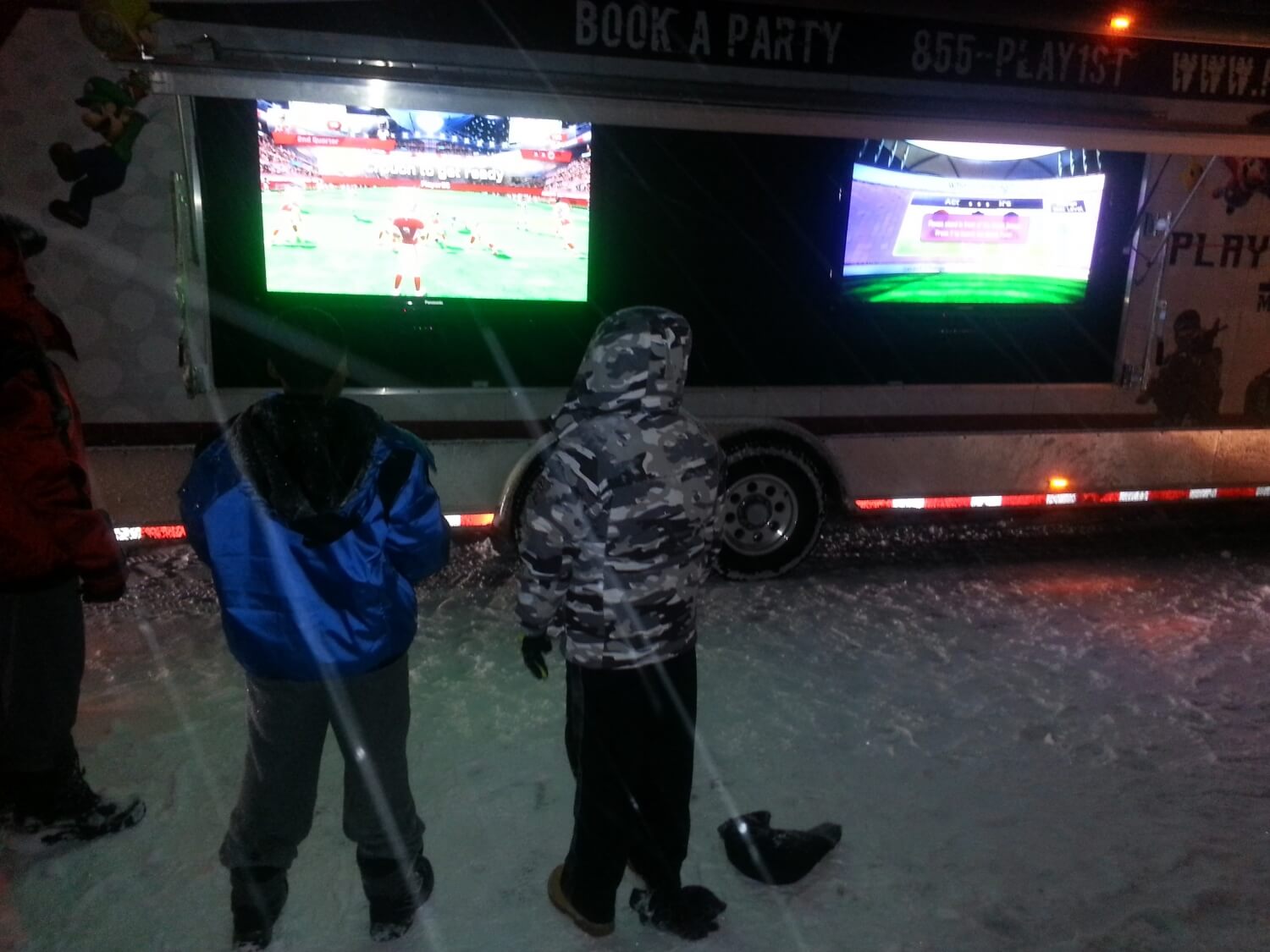 Play 1st Mobile Gaming brings life to any party or event. With our unique gaming truck and trailer, we can bring you six indoor screens with connections to Xbox gaming consoles. With comfortable seating and a massive selection of games in a temperature-controlled environment, our mobile gaming truck is perfect for parties in any season or type of weather! During beautiful weather and warmer months, we have two outdoor screens that can hook up to our Nintendo Switch systems as well as our Xbox consoles.